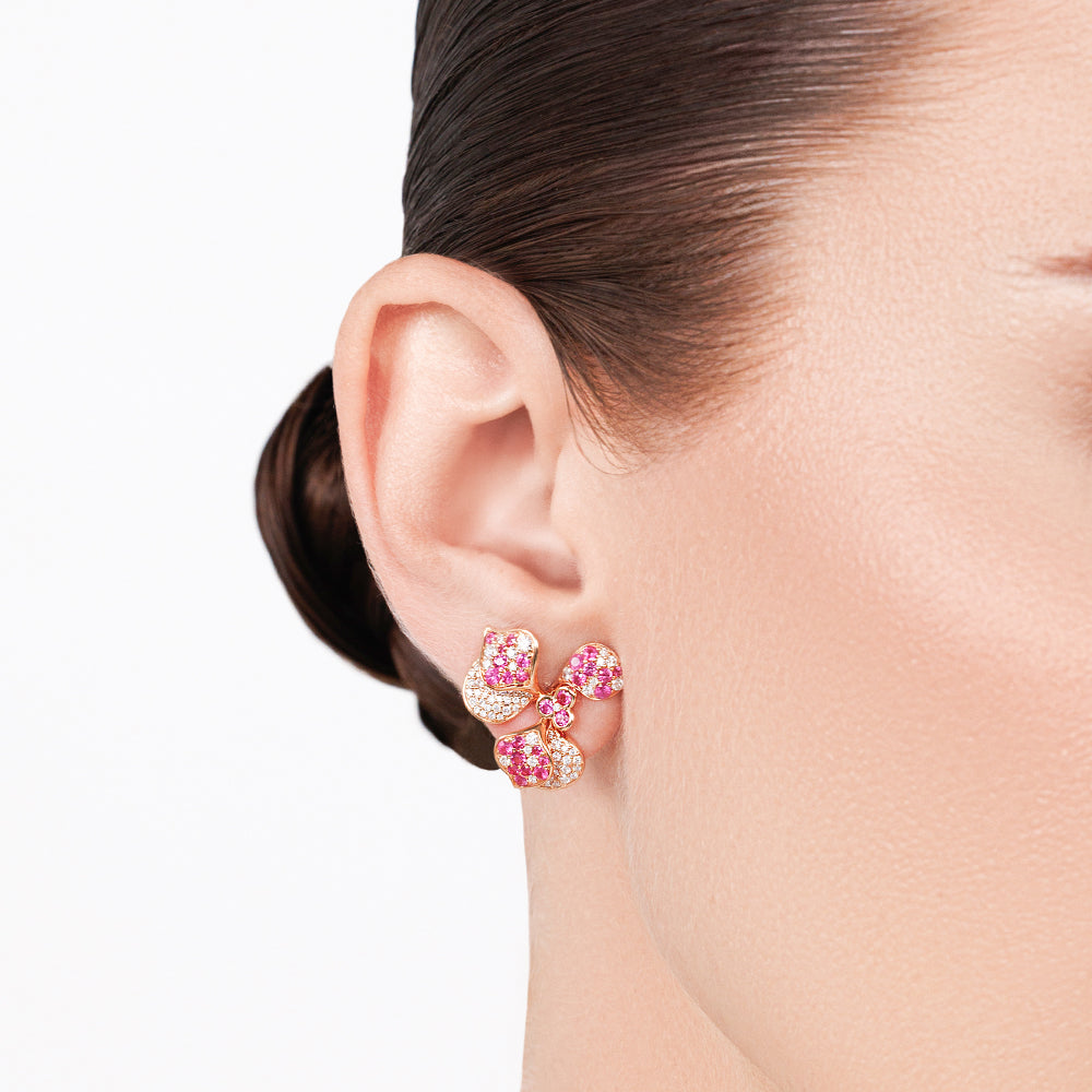 Introducing our 'Shapes Collection' - taking inspiration from the constructs that shape our everyday. Round Diamonds and Pink Sapphires combine, and contrast, to form vibrant flower petal stud earrings.