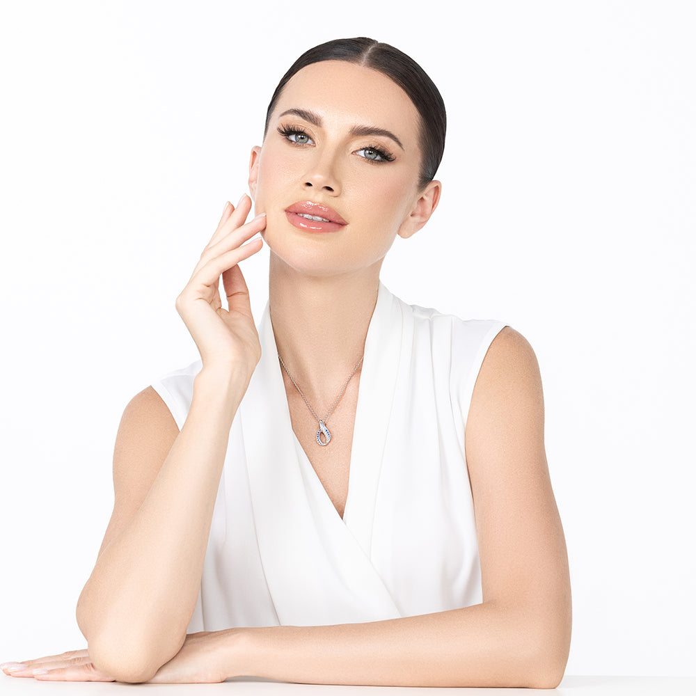 Introducing our 'Shapes Collection,' taking inspiration from the constructs that shape our everyday. This delicate necklace carries a pendant alike a loosened knot of diamonds and sapphires - an everyday necklace best paired with its matching earring set.