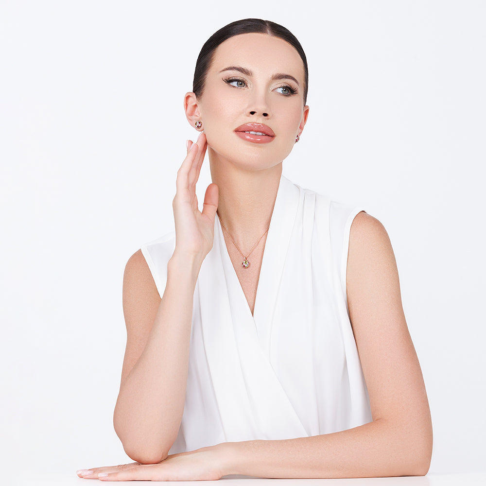 Introducing our 'Kaleidoscope Collection' – paying homage to our collection of pearls and birthstones. A cluster of round diamonds, pink sapphires, tsavorites, amethysts, peridots, and pink tourmalines take form in this pendant that adds color to your everyday.